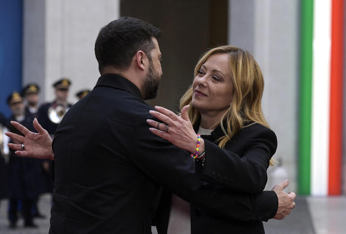 La stretta di mano con il Papa, il lungo e sincero abbraccio con Giorgia Meloni. Il presidente ucraino Zelensky conclude ...